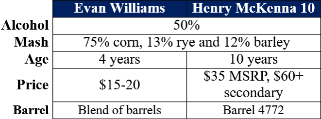 Evan Williams BIB vs Henry McKenna 10 Bottled in Bond Comparison